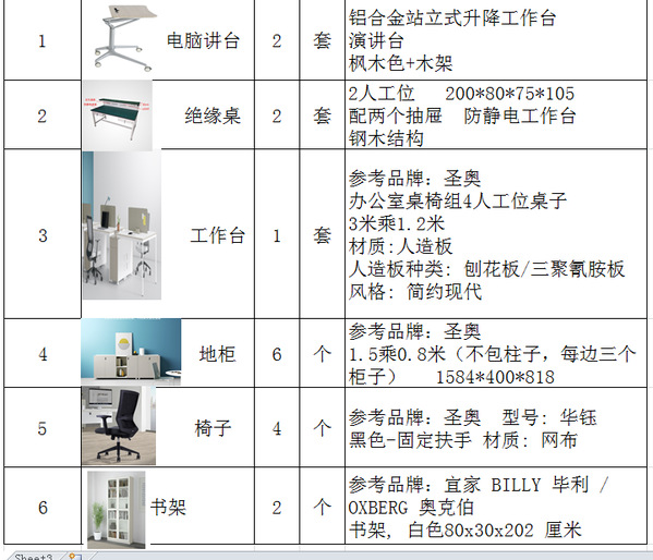 采购家具板材需符合环保标准,报价材料需包含材料的环保检测材料。家具的款式和尺寸需满足场所放置的要求。