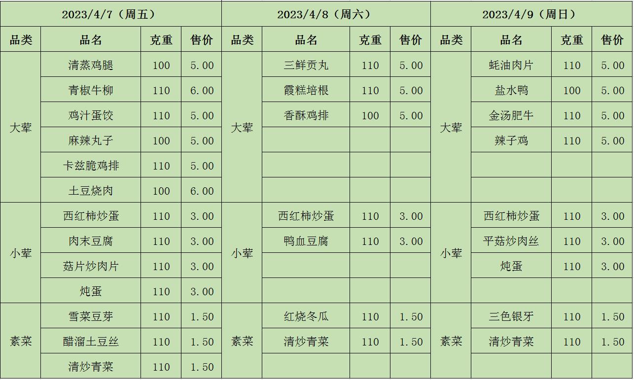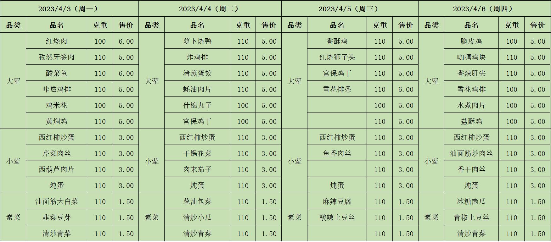 周菜单(2023年4月3日-4月9日--教育园校区食堂)