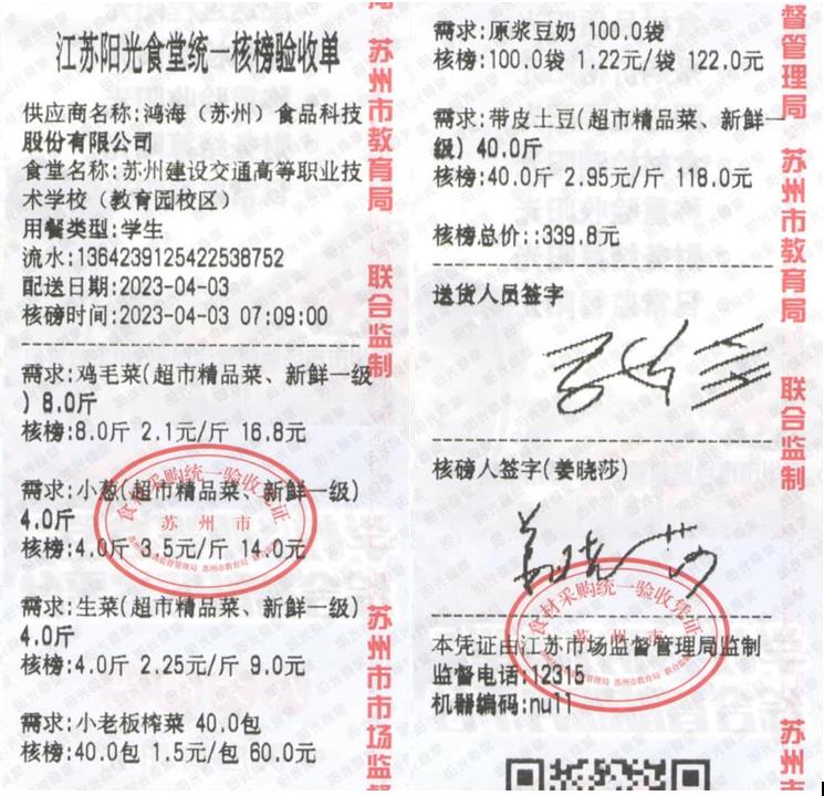 江苏阳光食堂统一核磅验收单(20230403-食材)