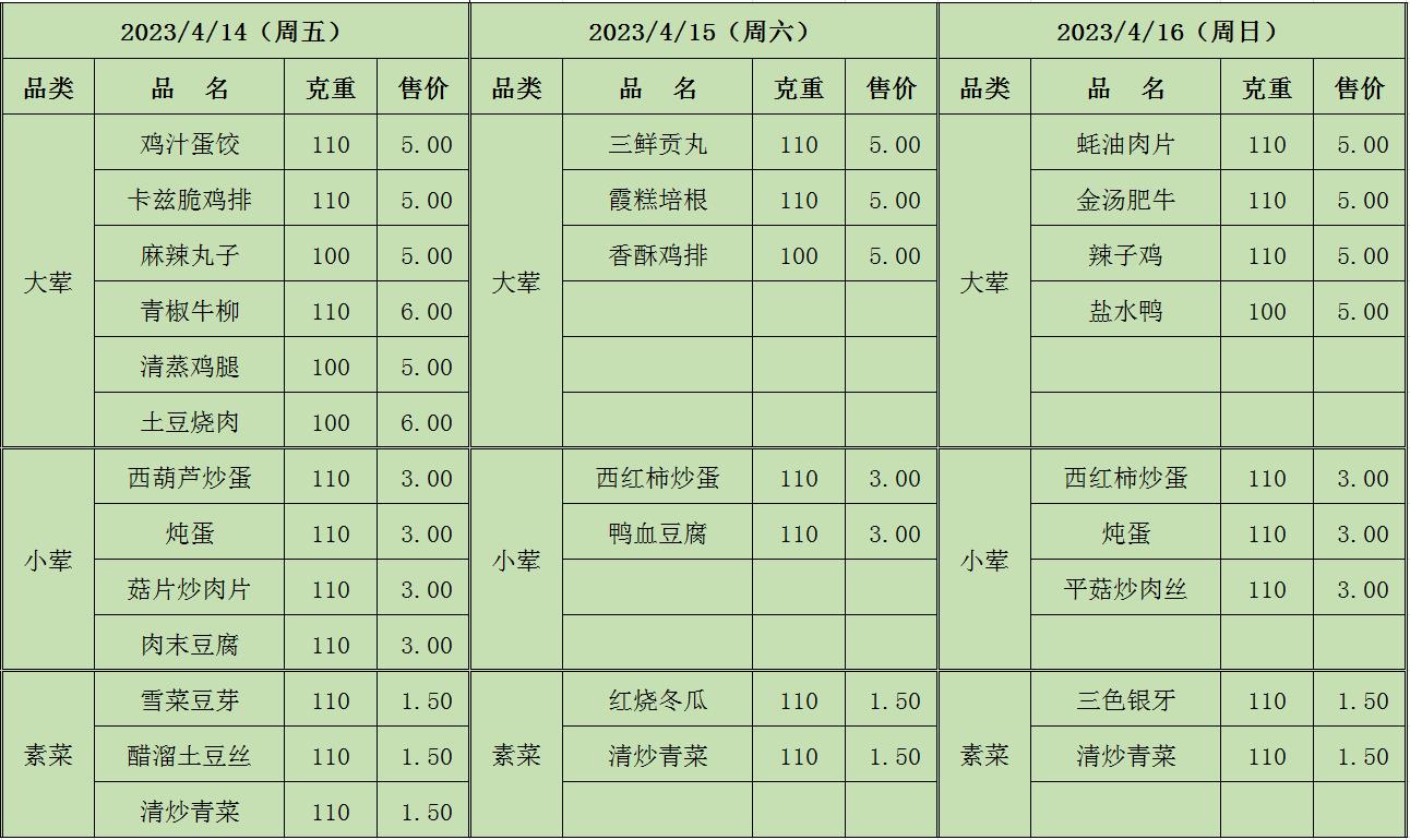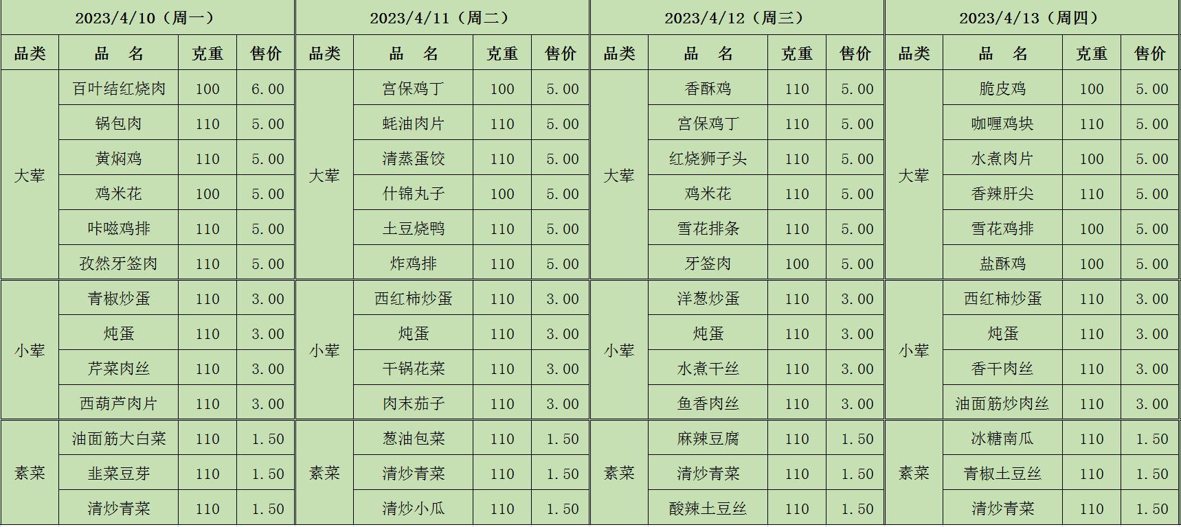 周菜单(2023年4月10日-4月16日--教育园校区食堂)
