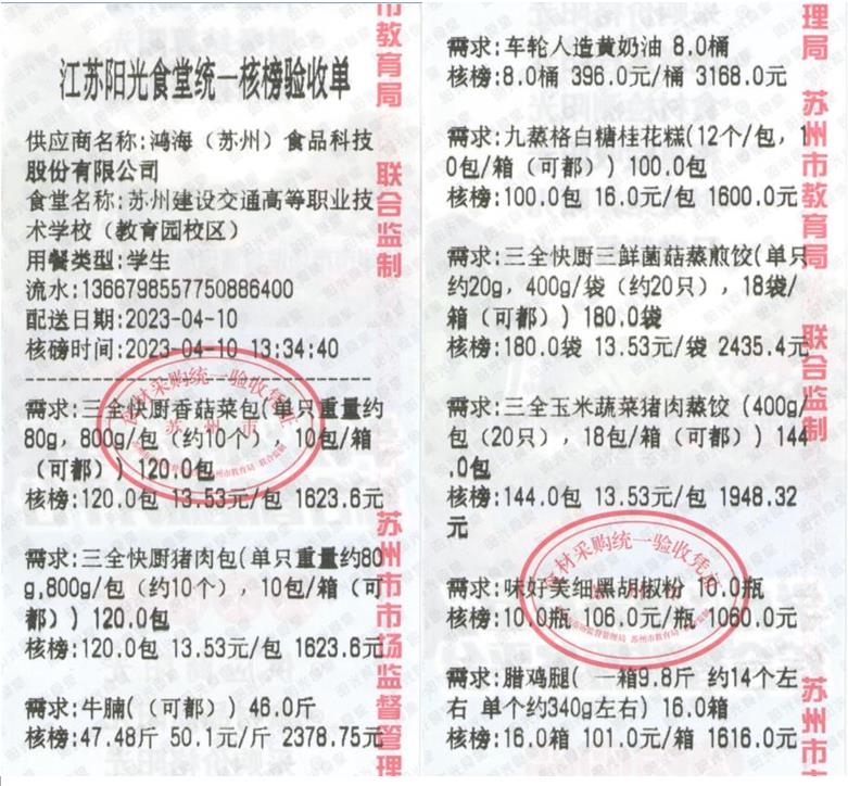 江苏阳光食堂统一核磅验收单(20230410-食材)