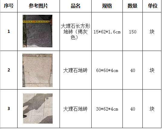 采购的地砖需与原使用地砖规格一致,无明显色差。(地砖颜色需经校方使用部门确认)。