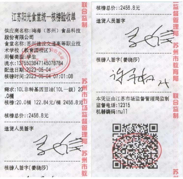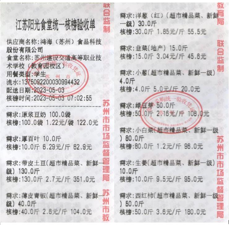 江苏阳光食堂统一核磅验收单(20230503-食材)