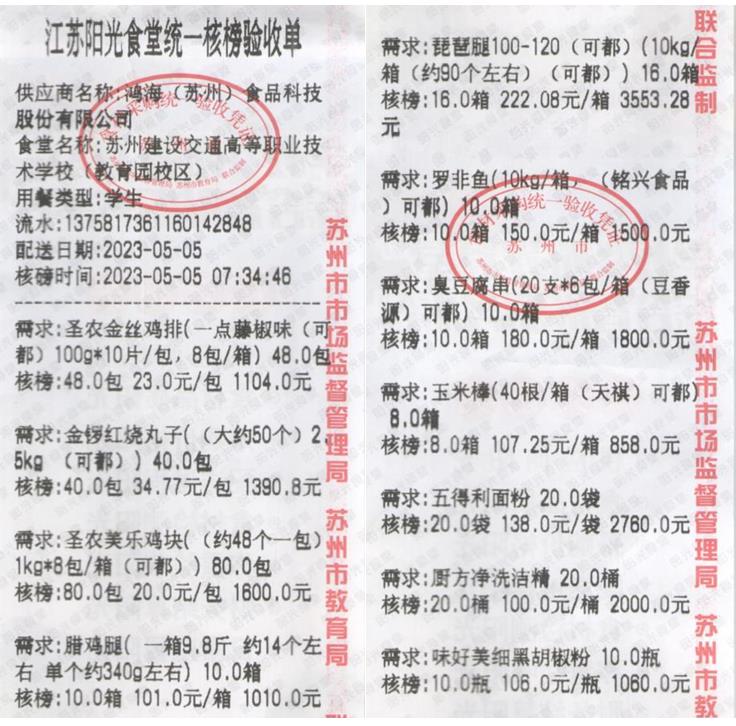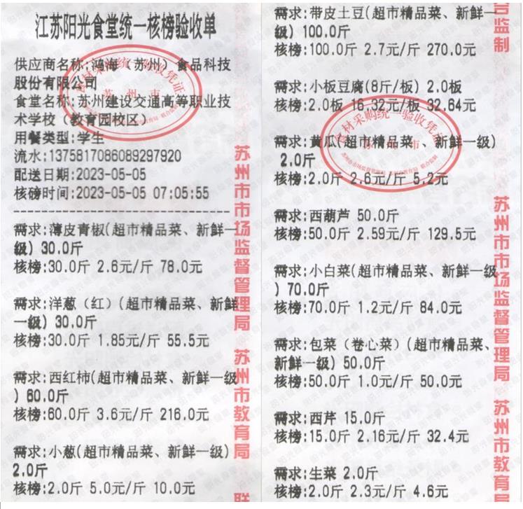 江苏阳光食堂统一核磅验收单(20230505-食材)
