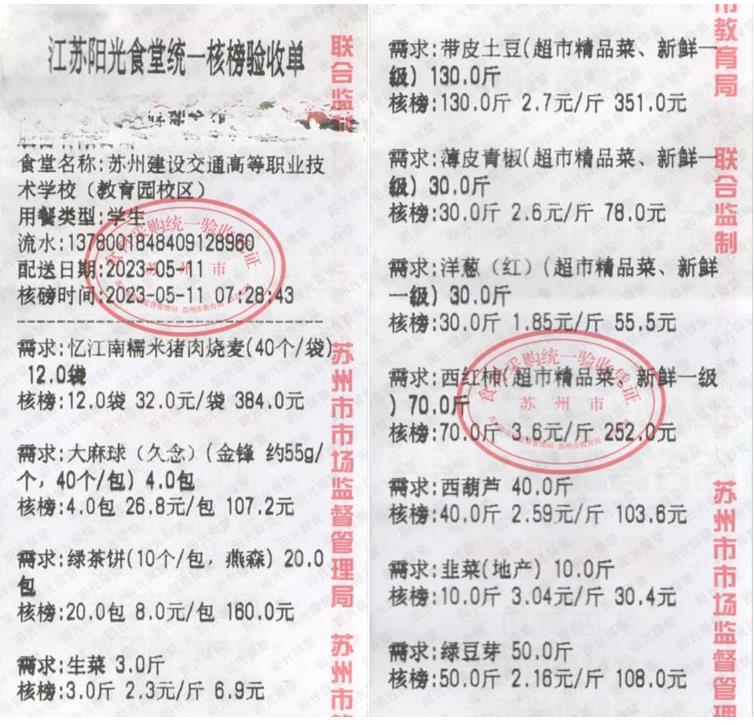 江苏阳光食堂统一核磅验收单(20230511-食材)