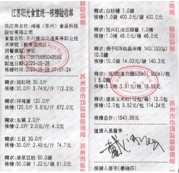 江苏阳光食堂统一核磅验收单(20230528-食材)