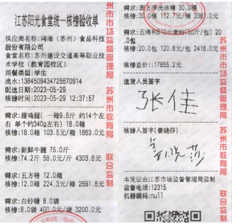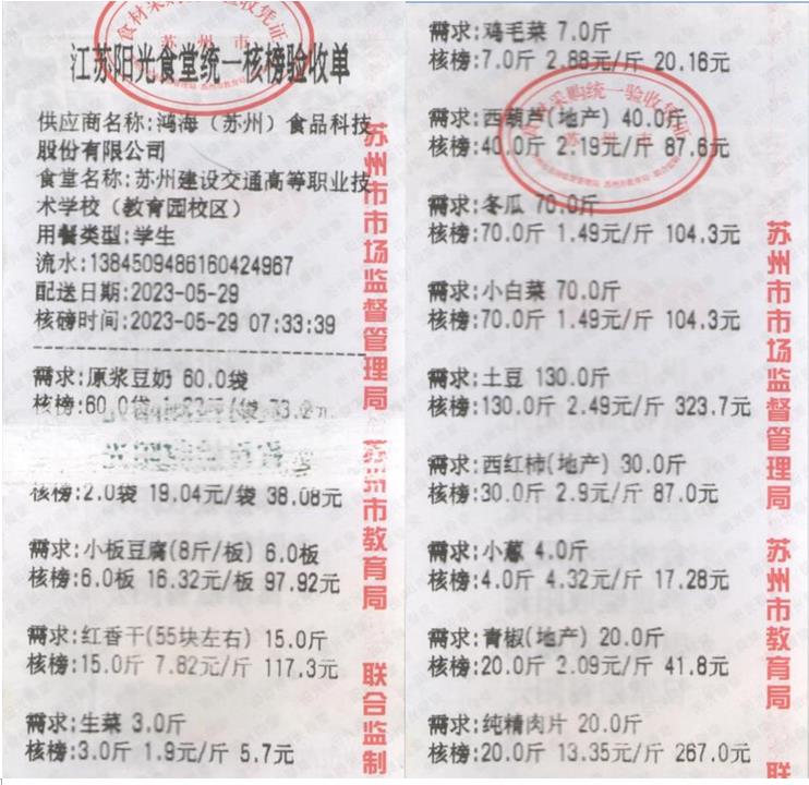江苏阳光食堂统一核磅验收单(20230529-食材)
