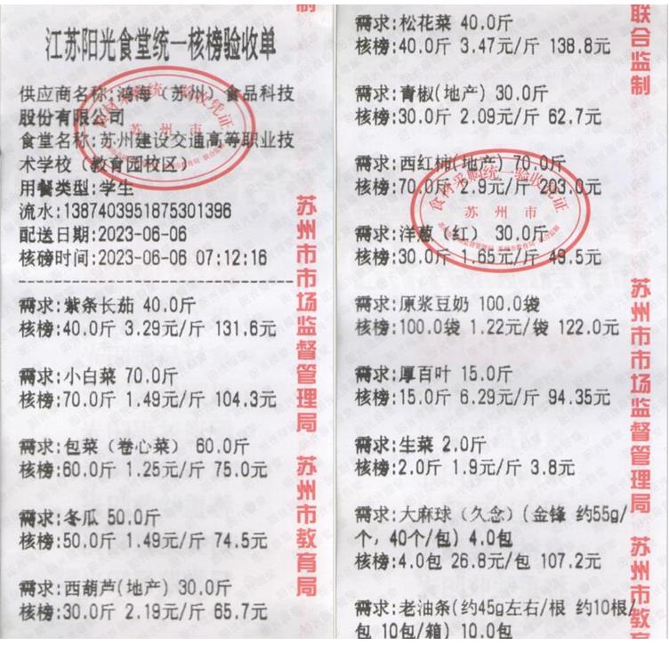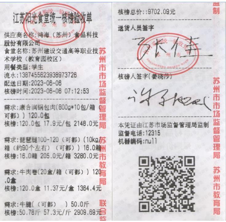 江苏阳光食堂统一核磅验收单(20230606-食材)