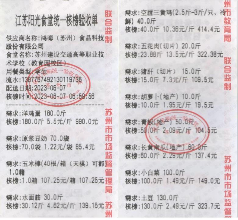 江苏阳光食堂统一核磅验收单(20230607-食材)