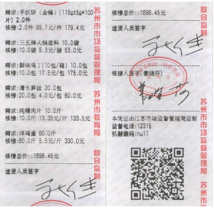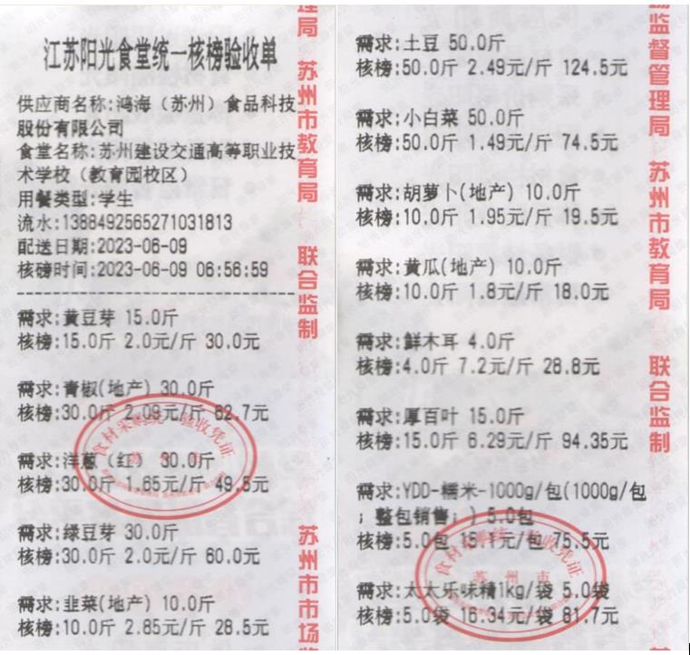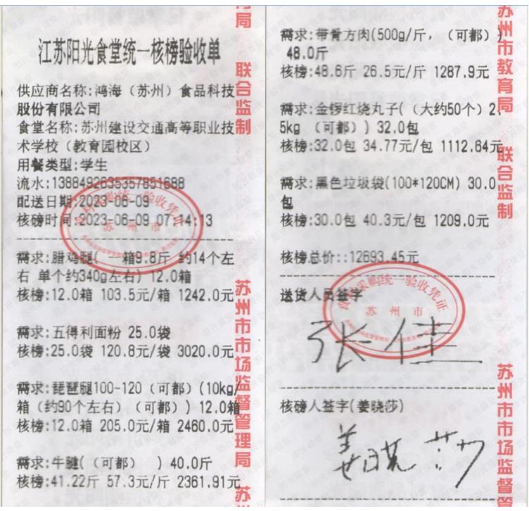 江苏阳光食堂统一核磅验收单(20230609-食材)