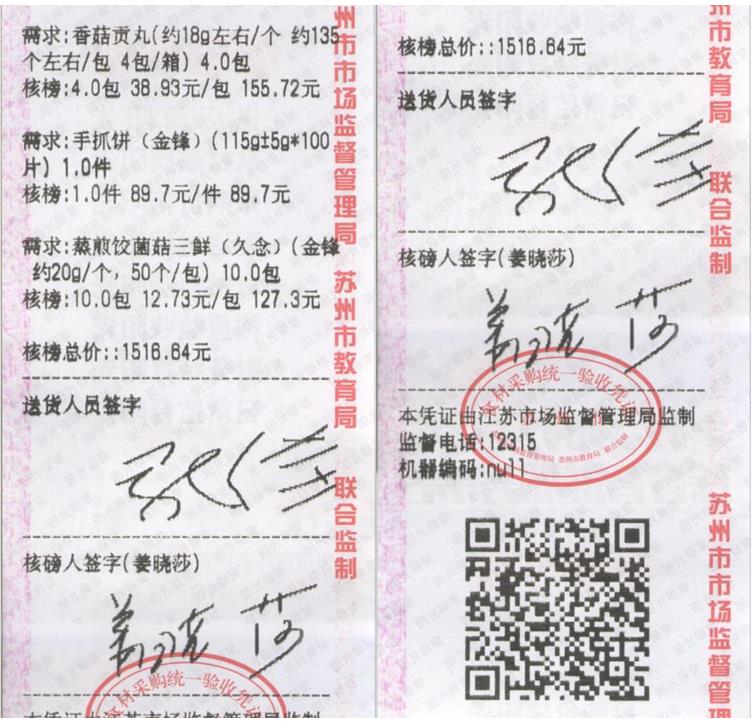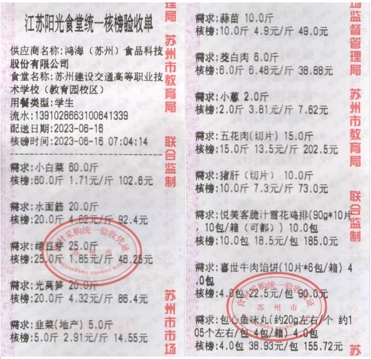 江苏阳光食堂统一核磅验收单(20230616-食材)