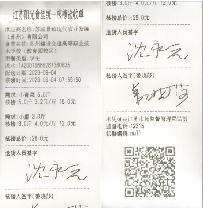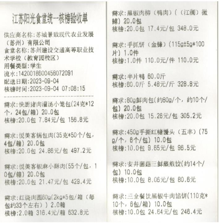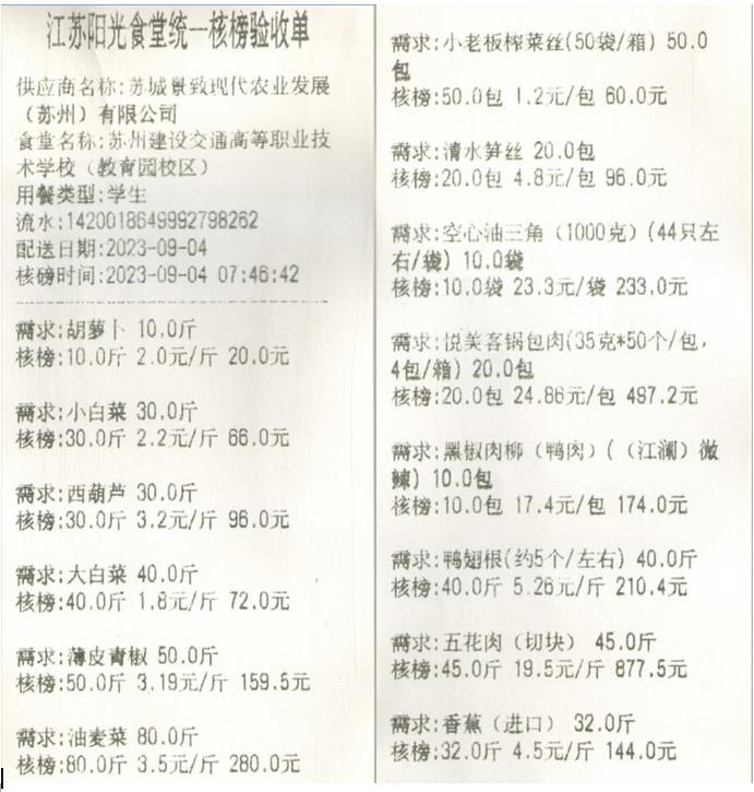 江苏阳光食堂统一核磅验收单(20230904-食材)