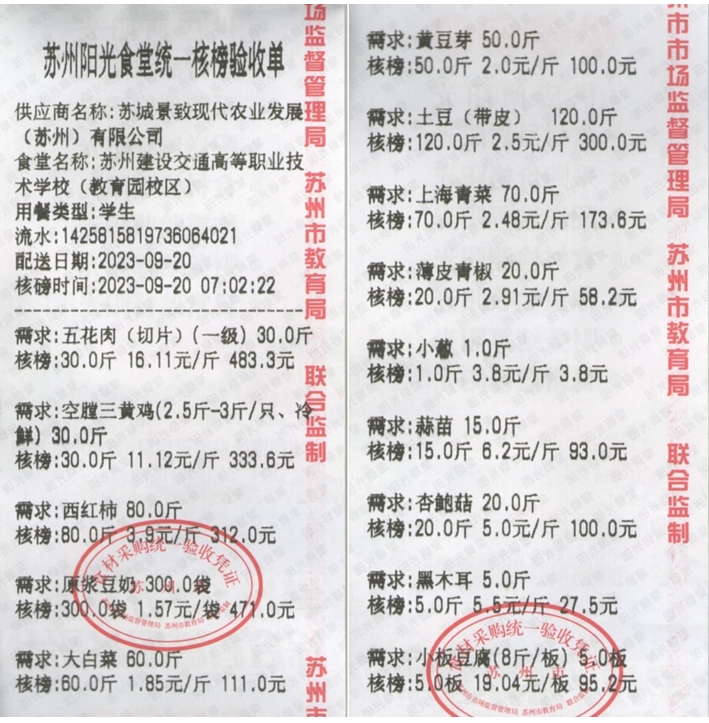 苏州阳光食堂统一核磅验收单(20230920-食材)