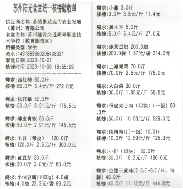 苏州阳光食堂统一核磅验收单(20231007-食材)