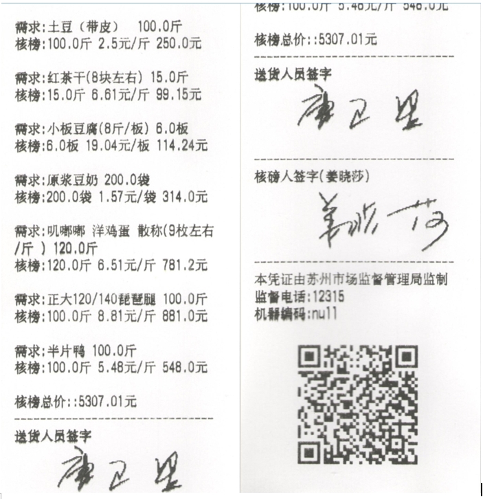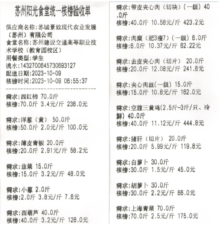 苏州阳光食堂统一核磅验收单(20231009-食材)