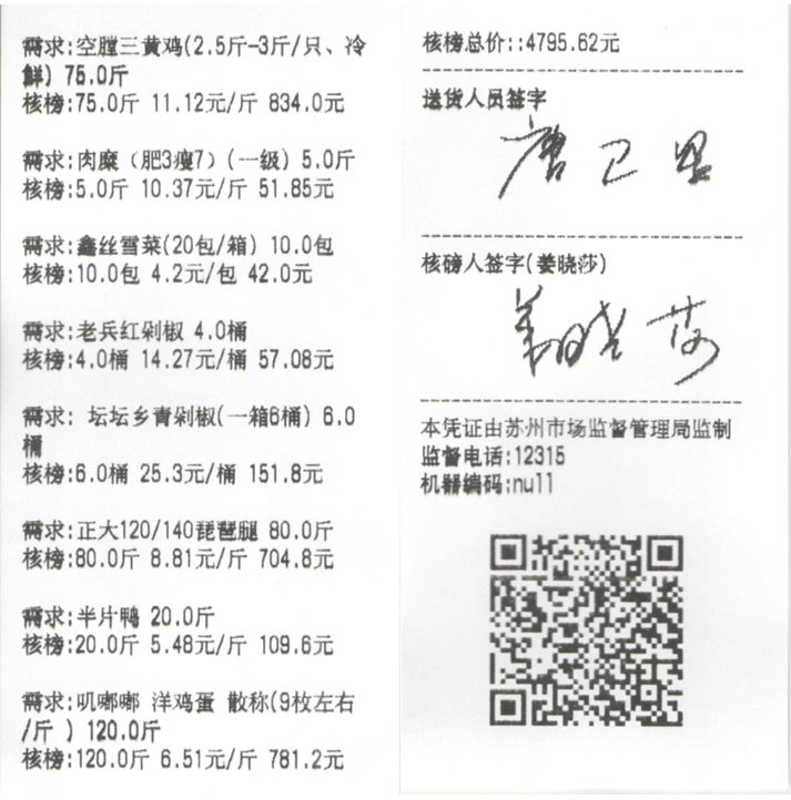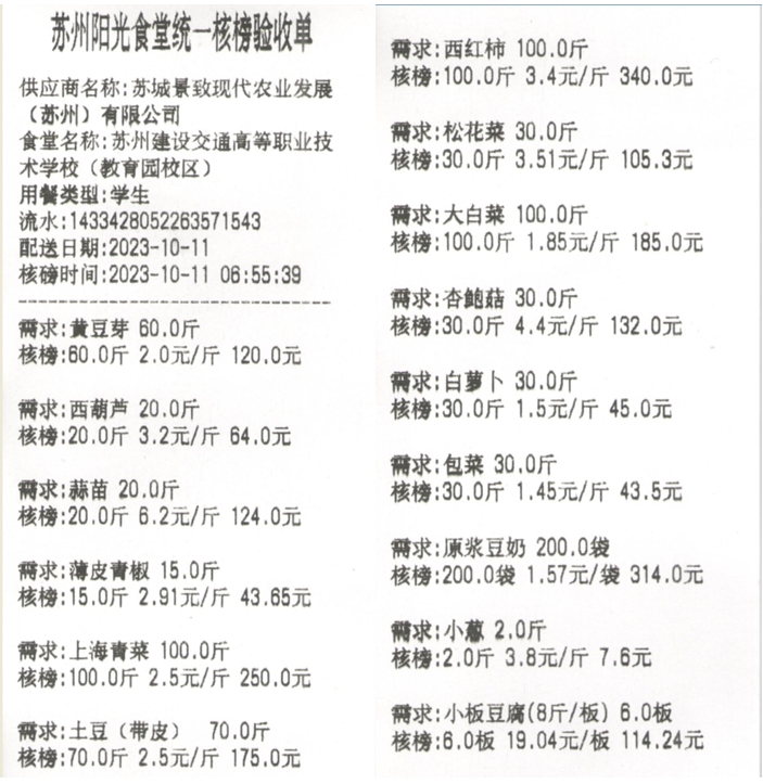 苏州阳光食堂统一核磅验收单(20231011-食材)