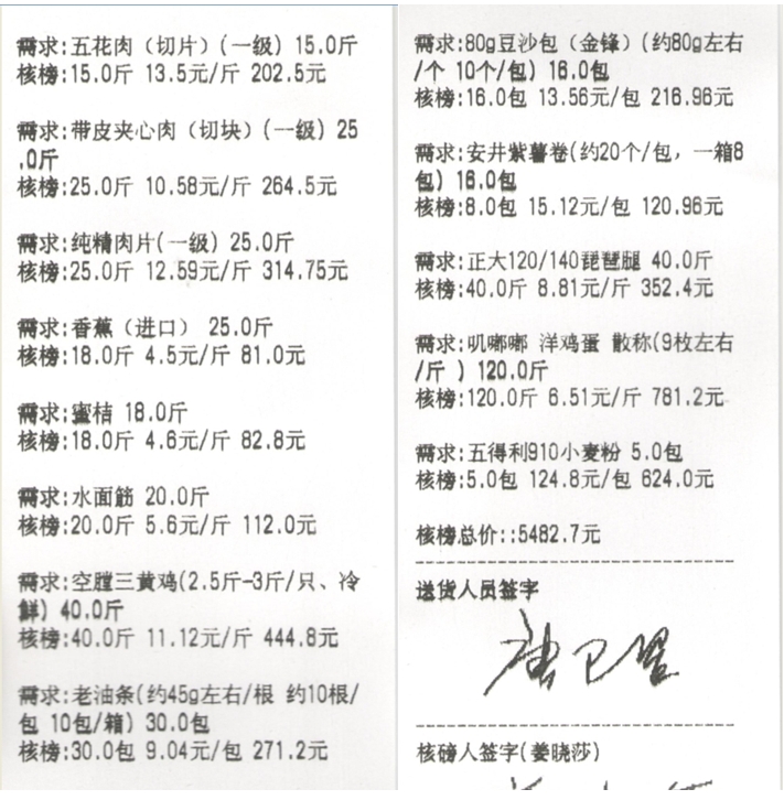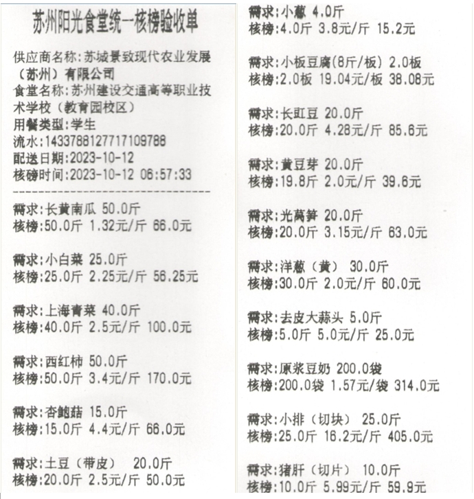 苏州阳光食堂统一核磅验收单(20231012-食材)
