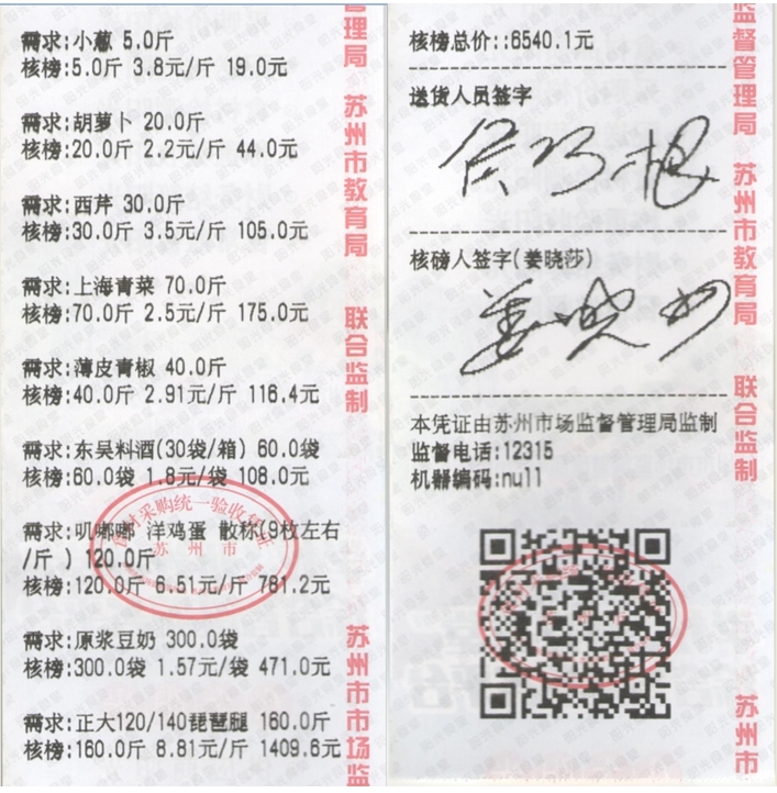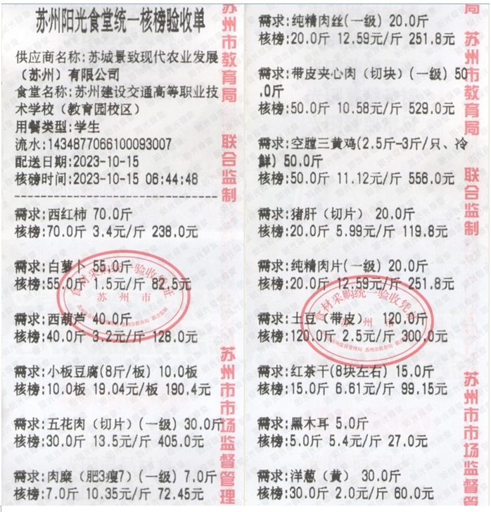 苏州阳光食堂统一核磅验收单(20231015-食材)