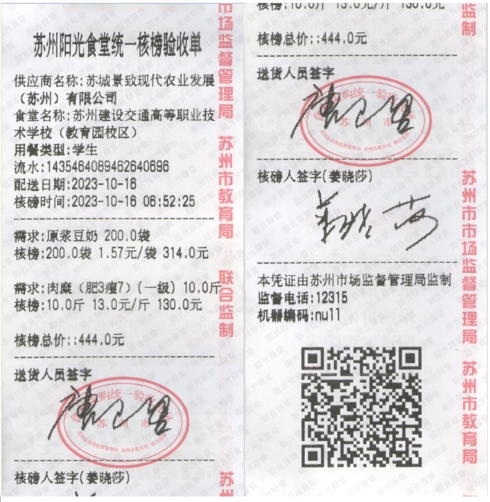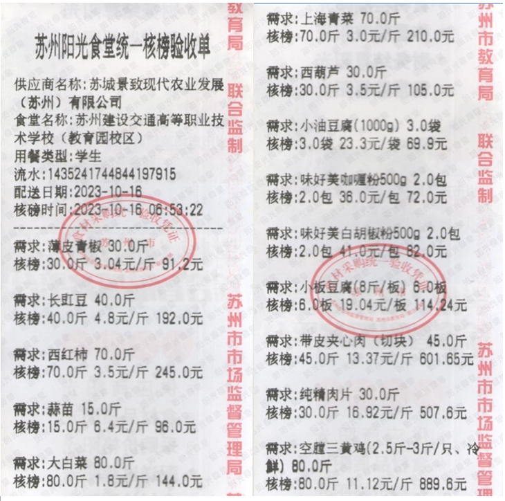 苏州阳光食堂统一核磅验收单(20231016-食材)