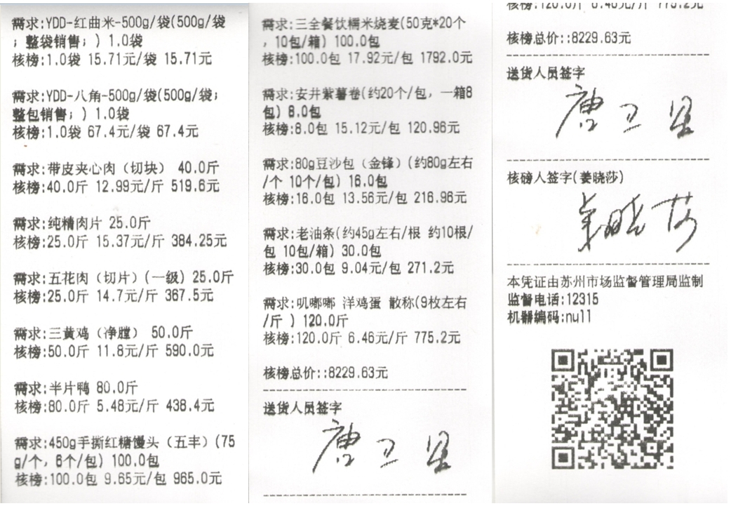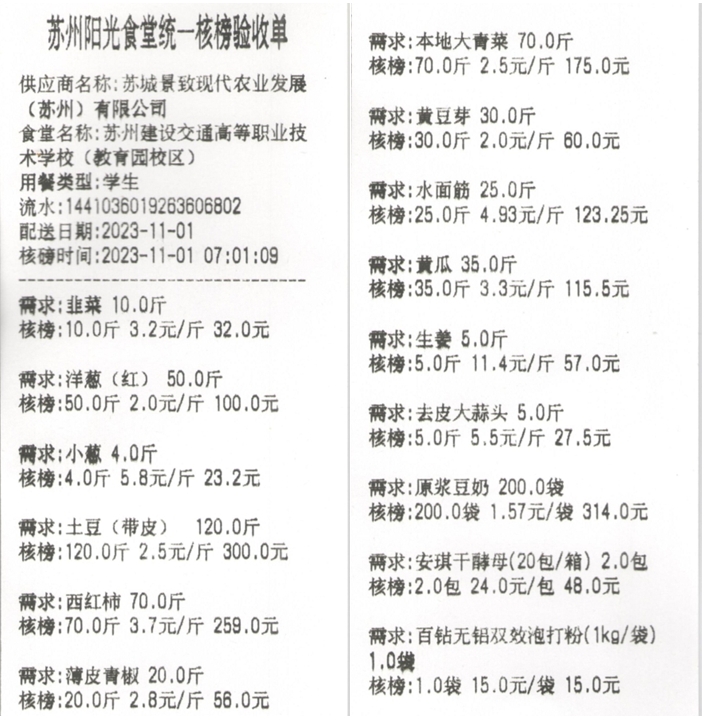 苏州阳光食堂统一核磅验收单(20231101-食材)