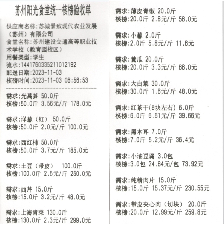 苏州阳光食堂统一核磅验收单(20231103-食材)