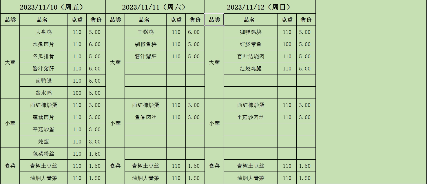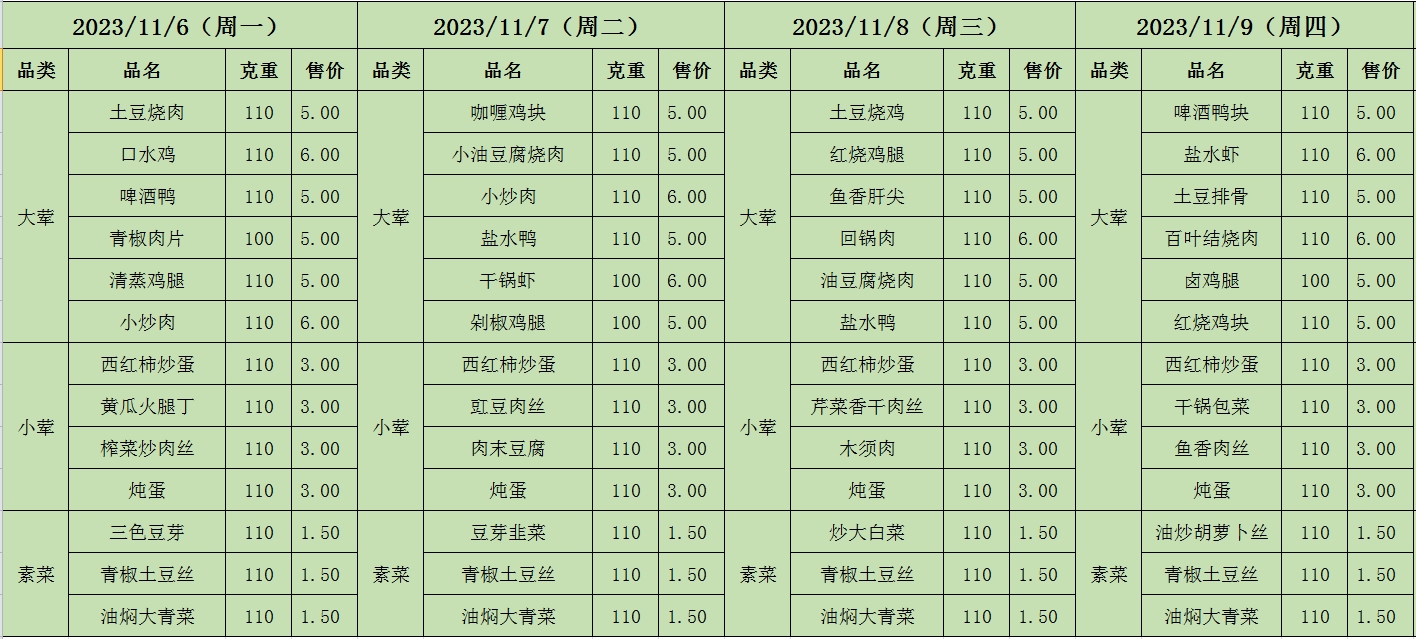周菜单(2023年11月06日-11月12日--教育园校区食堂)