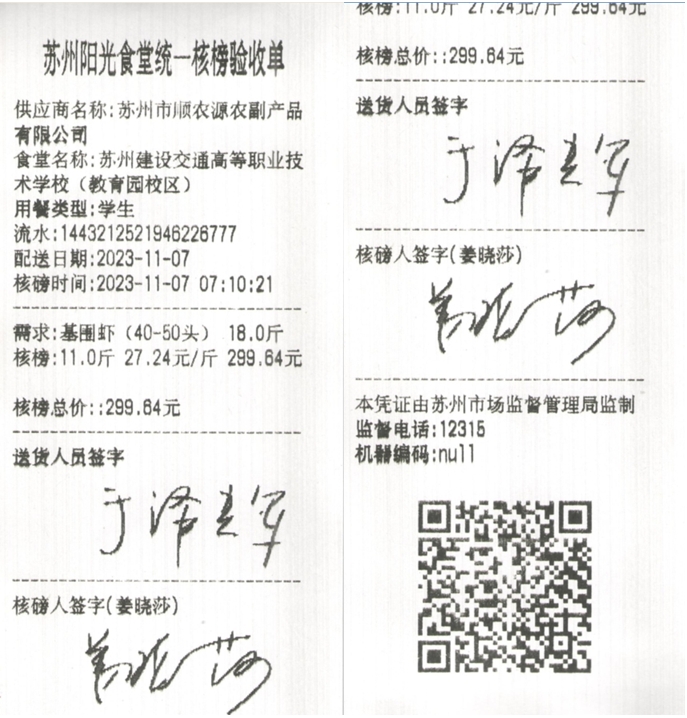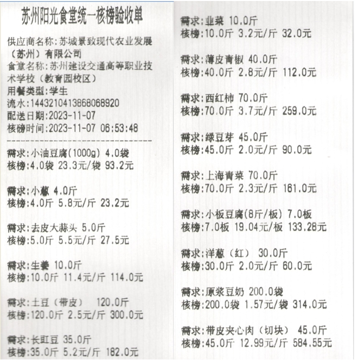 苏州阳光食堂统一核磅验收单(20231107-食材)