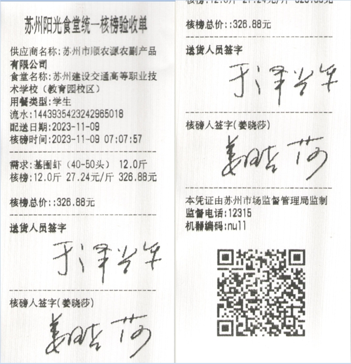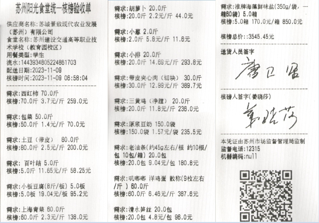 苏州阳光食堂统一核磅验收单(20231109-食材)
