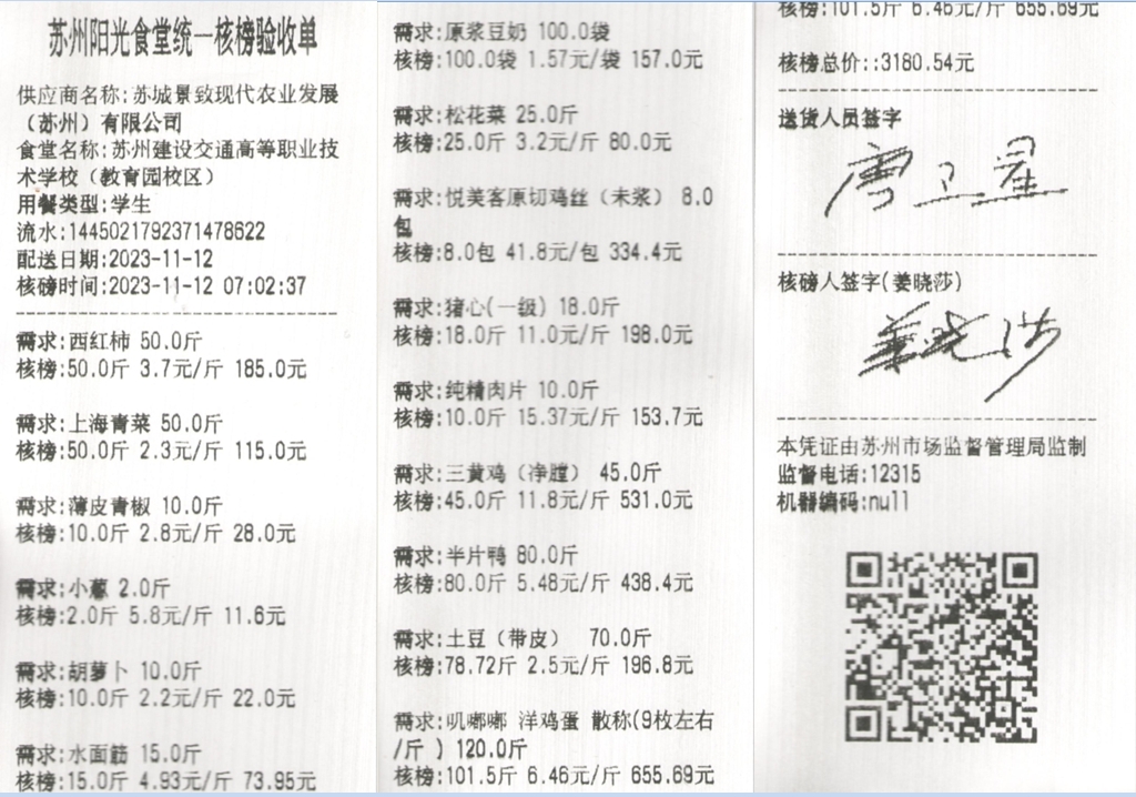 苏州阳光食堂统一核磅验收单(20231112-食材)