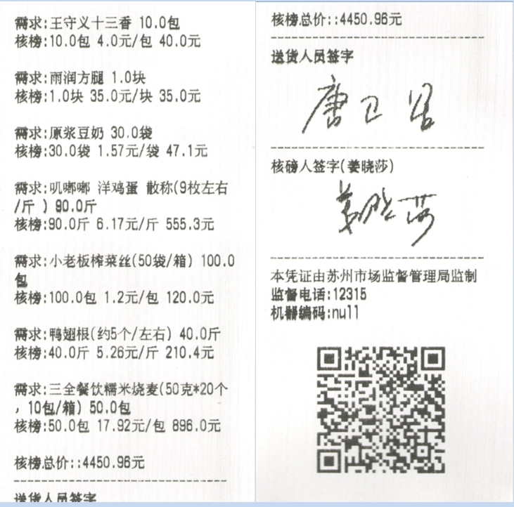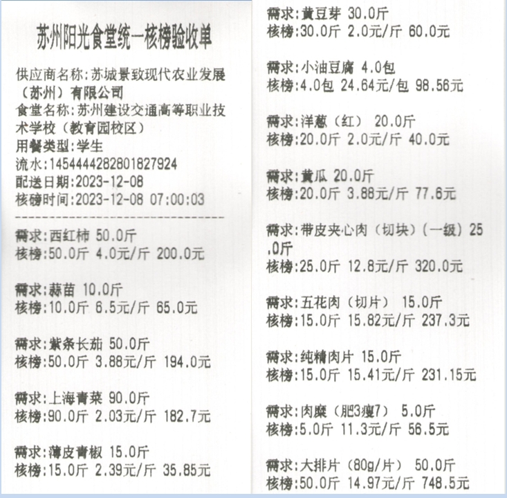 苏州阳光食堂统一核磅验收单(20231208-食材)