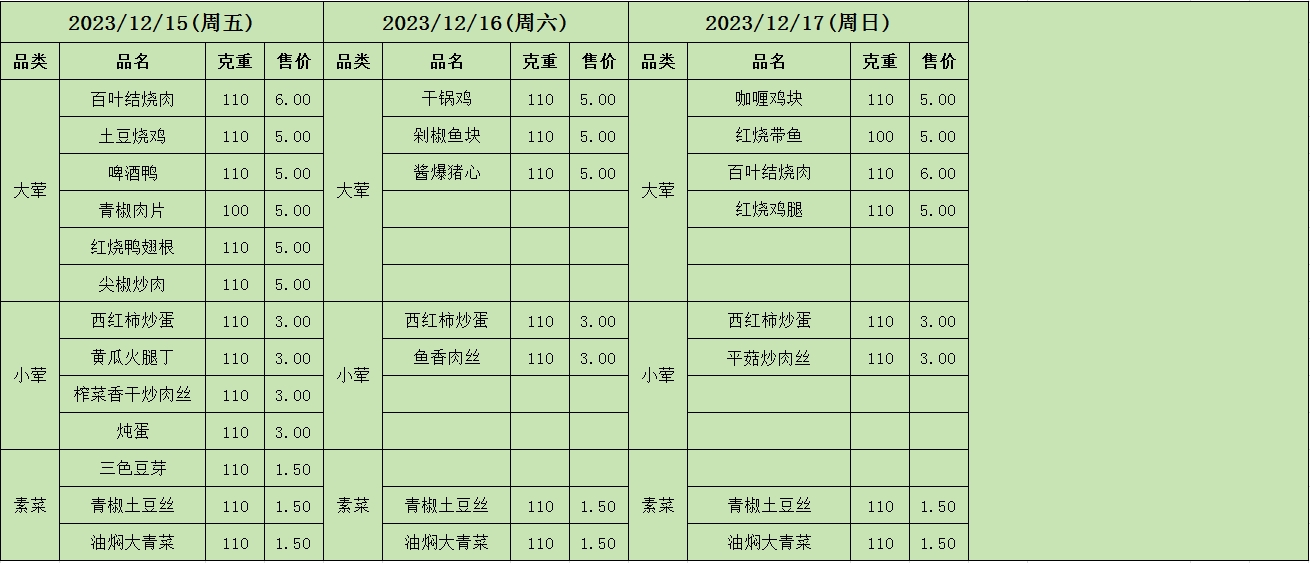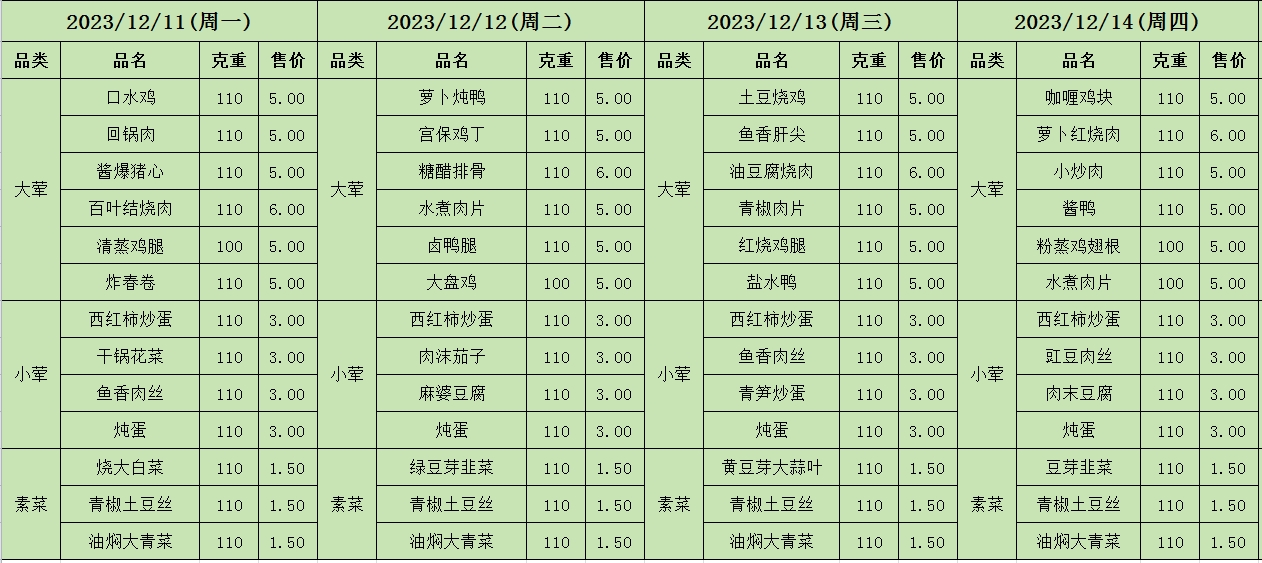 周菜单(2023年12月11日-12月17日--教育园校区食堂)
