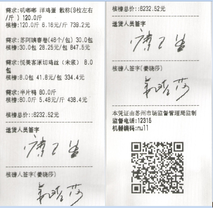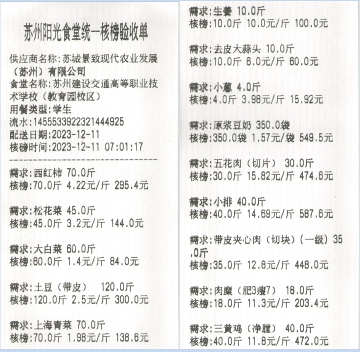 苏州阳光食堂统一核磅验收单(20231211-食材)