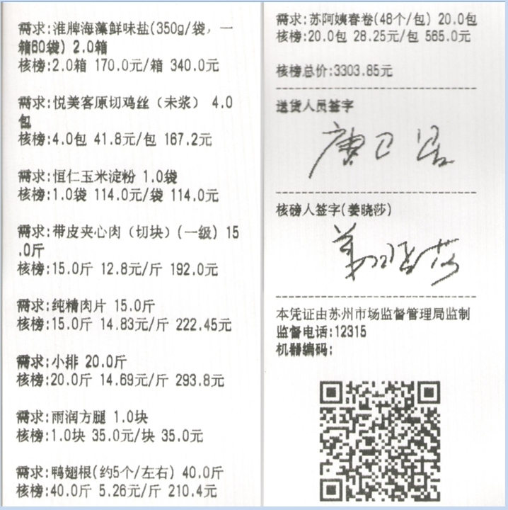 苏州阳光食堂统一核磅验收单(20231215-食材)
