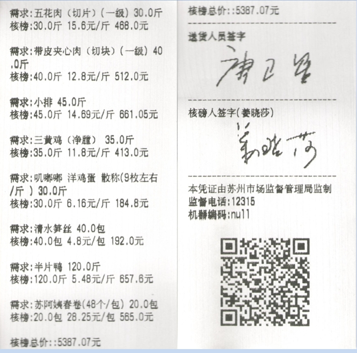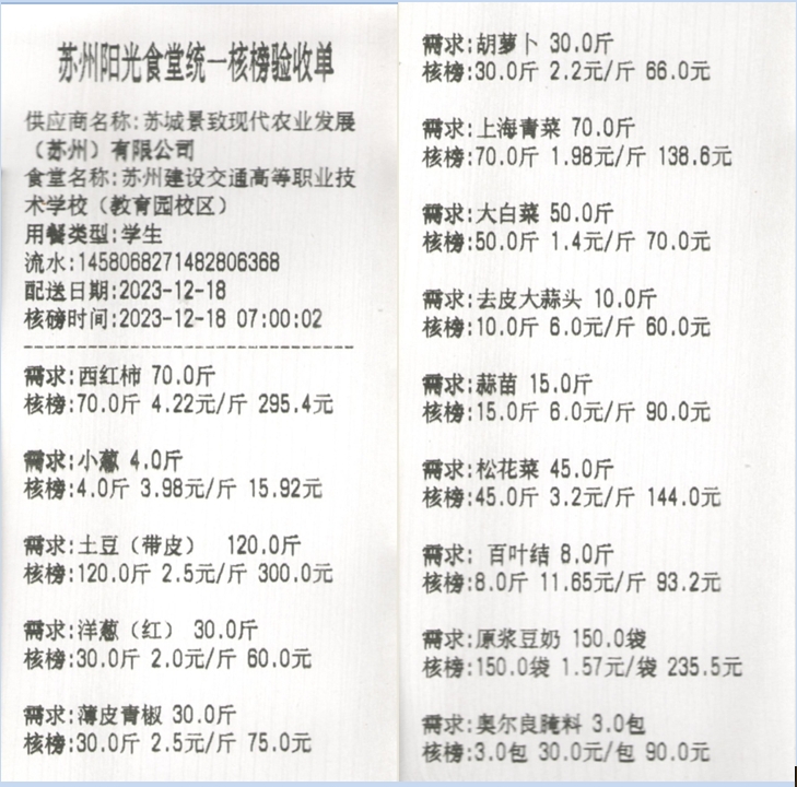 苏州阳光食堂统一核磅验收单(20231218-食材)