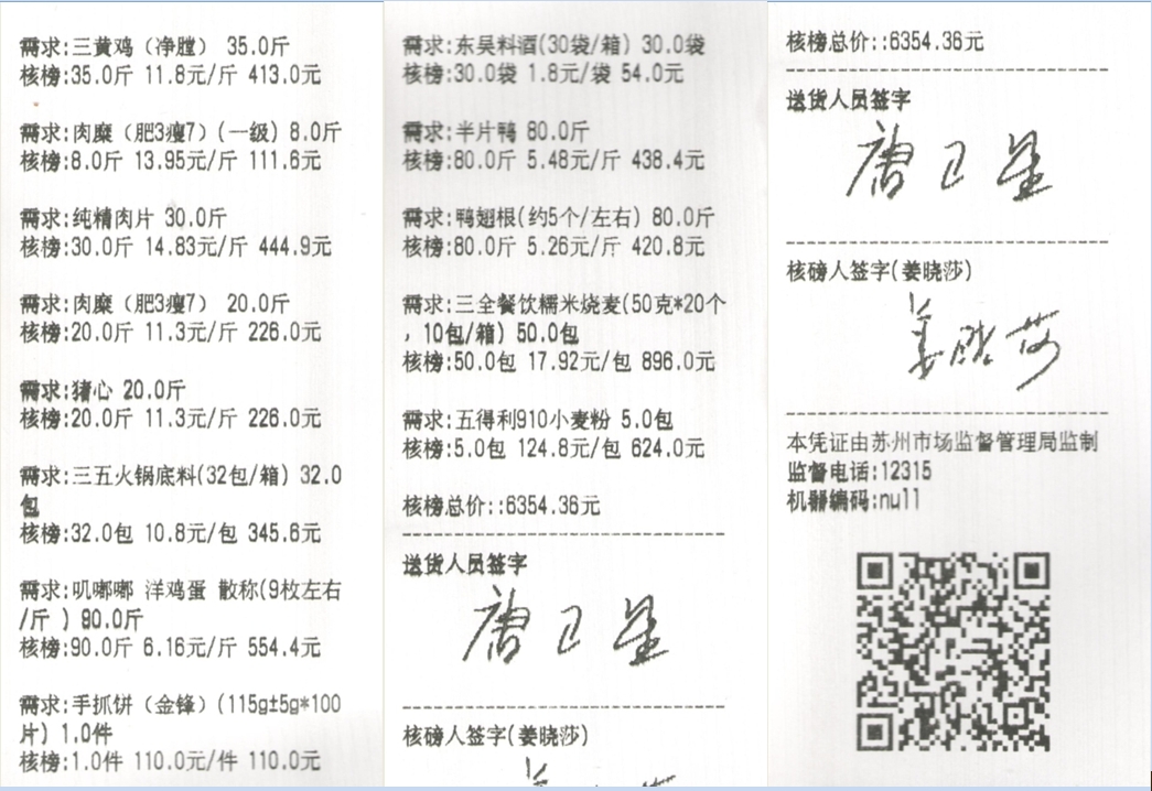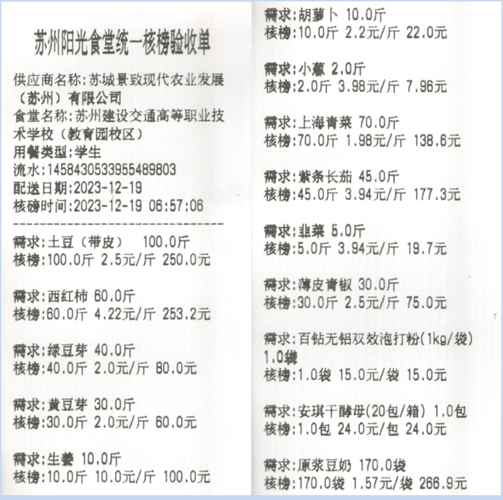 苏州阳光食堂统一核磅验收单(20231219-食材)