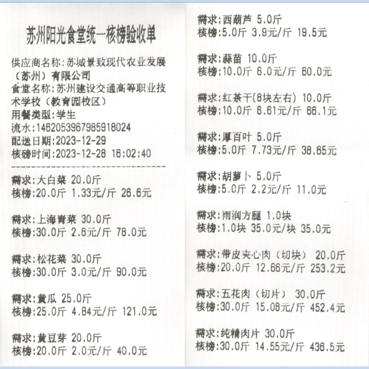 苏州阳光食堂统一核磅验收单(20231229-食材)