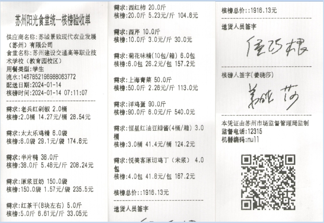 苏州阳光食堂统一核磅验收单(20240114-食材)