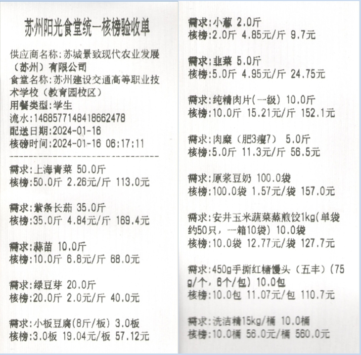 苏州阳光食堂统一核磅验收单(20240116-食材)