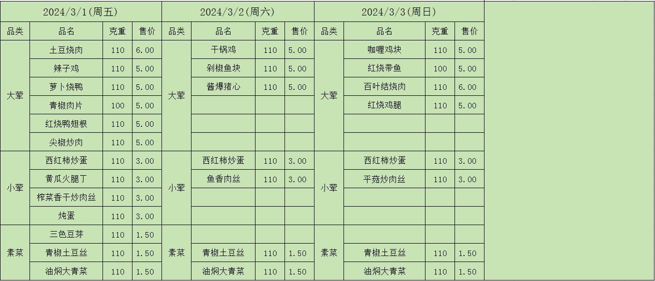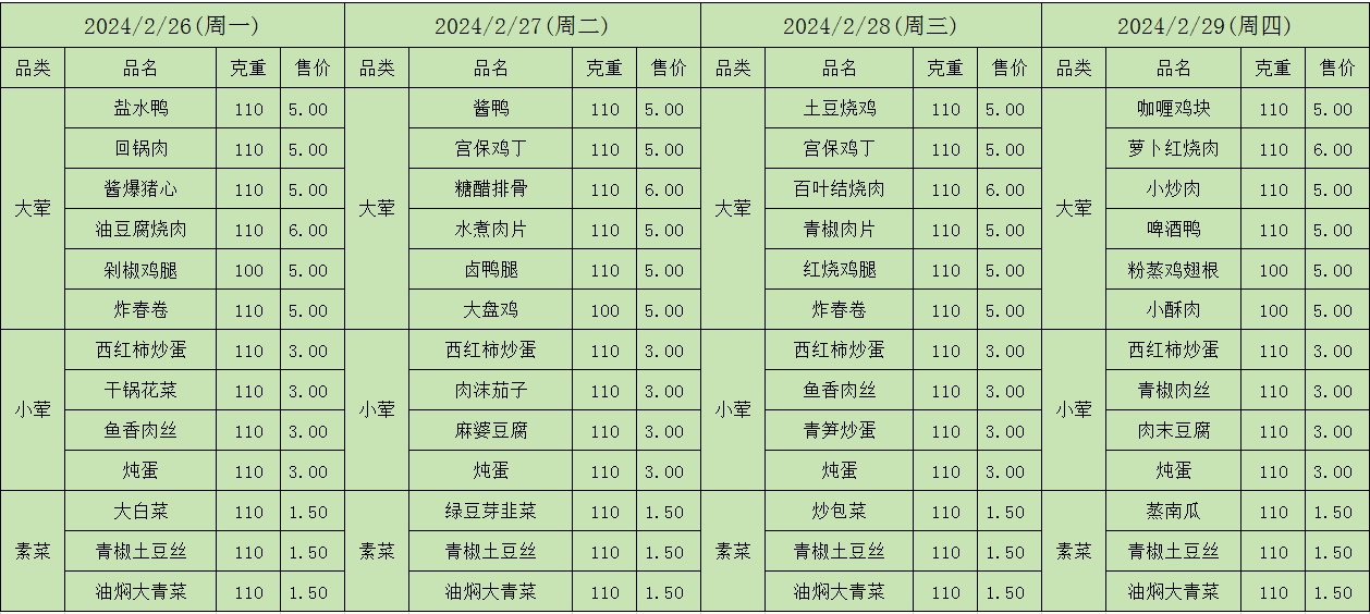 周菜单(2024年02月26日-03月03日--教育园校区食堂)