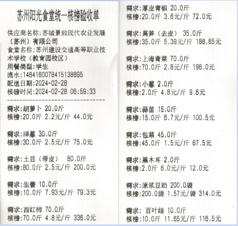 苏州阳光食堂统一核磅验收单(20240228-食材)