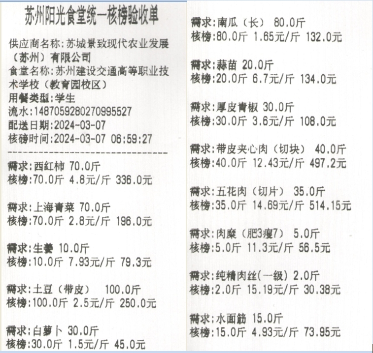 苏州阳光食堂统一核磅验收单(20240307-食材)
