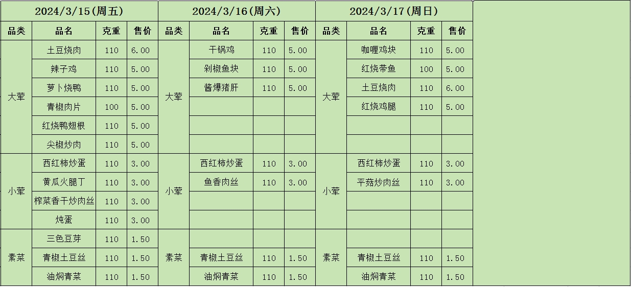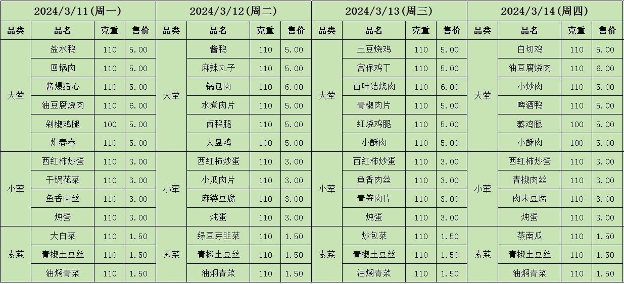 周菜单(2024年03月11日-03月17日--教育园校区食堂)