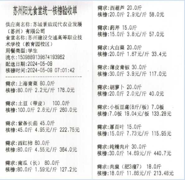 苏州阳光食堂统一核磅验收单(20240509-食材)