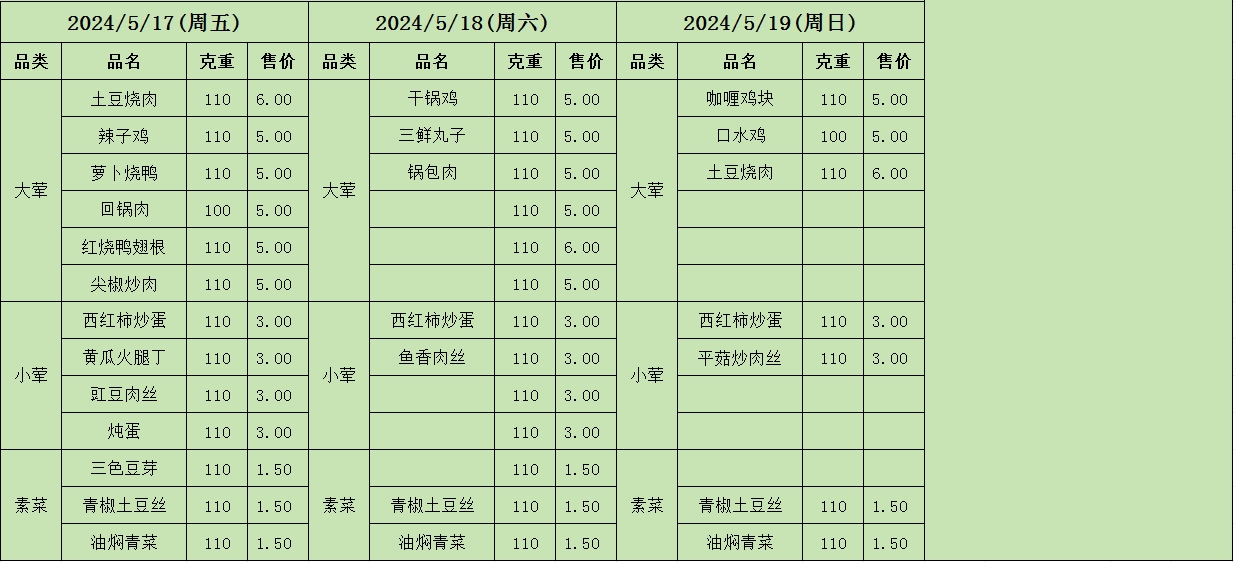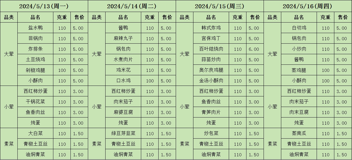 周菜单(2024年05月13日-05月19日--教育园校区食堂)