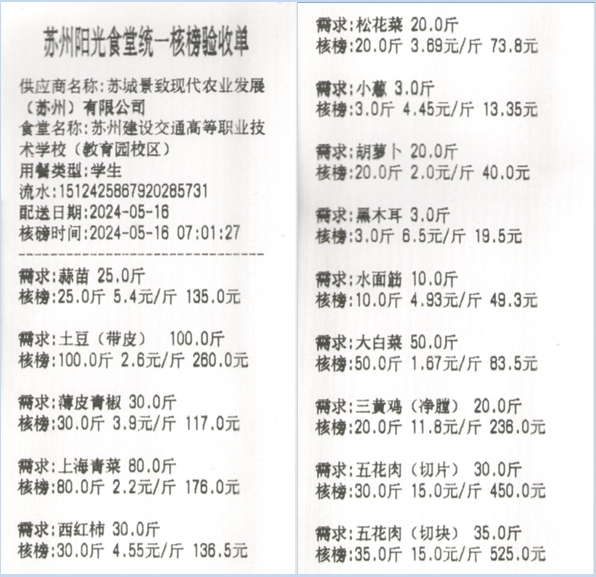 苏州阳光食堂统一核磅验收单(20240516-食材)