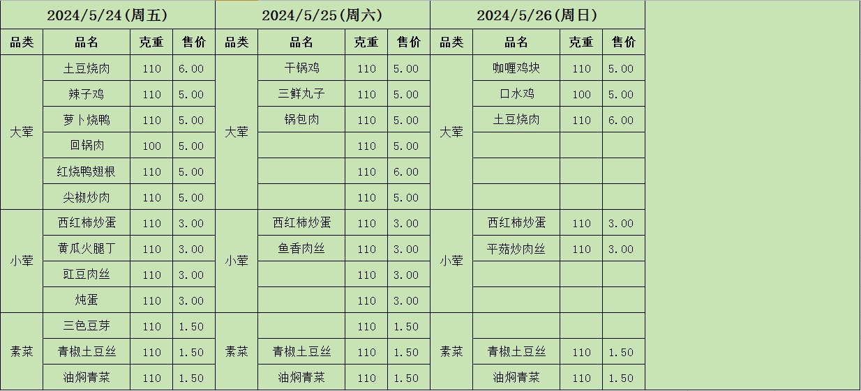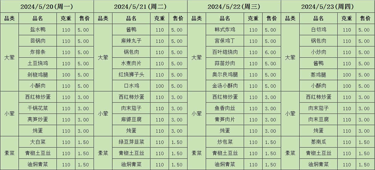 周菜单(2024年05月20日-05月26日--教育园校区食堂)
