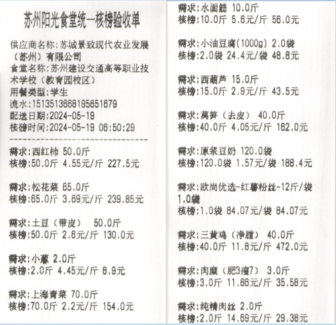 苏州阳光食堂统一核磅验收单(20240519-食材)