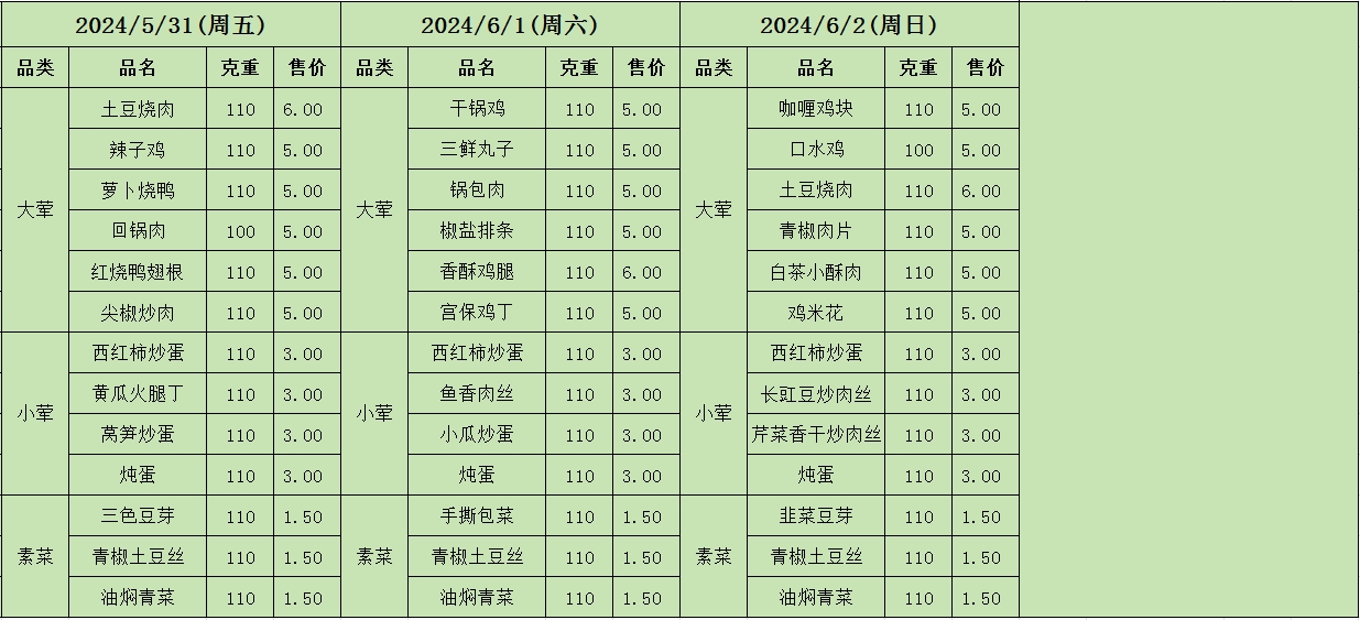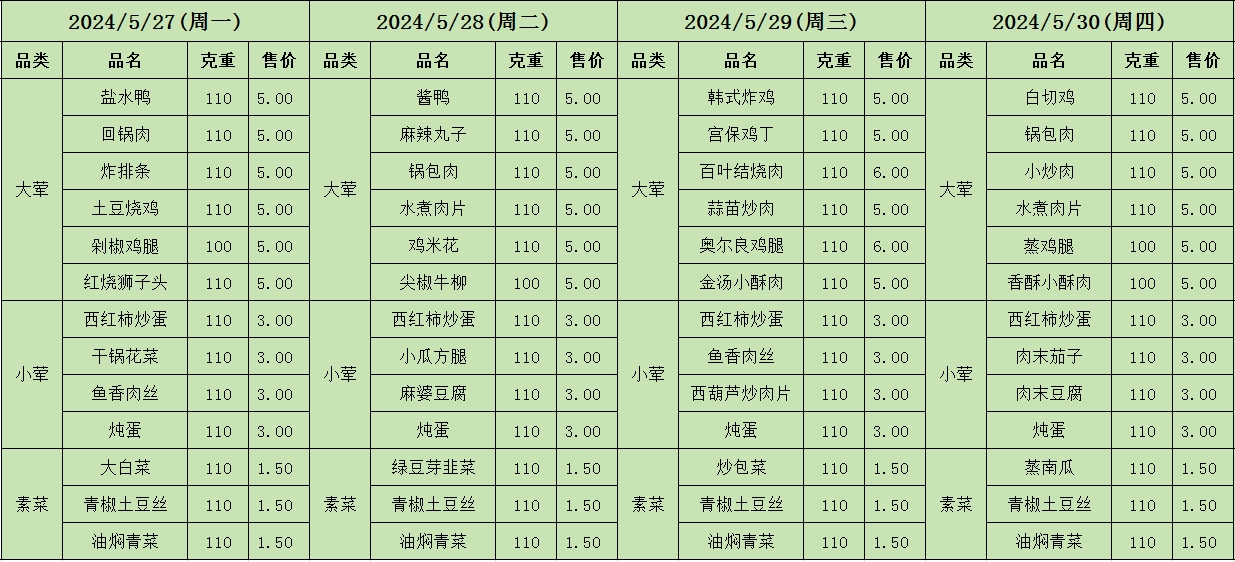 周菜单(2024年05月27日-06月02日--教育园校区食堂)