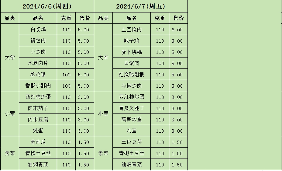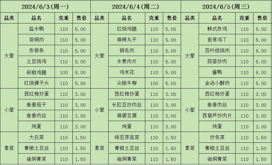 周菜单(2024年06月03日-06月07日--教育园校区食堂)