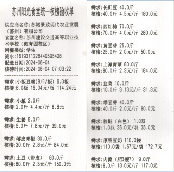 苏州阳光食堂统一核磅验收单(20240604-食材)